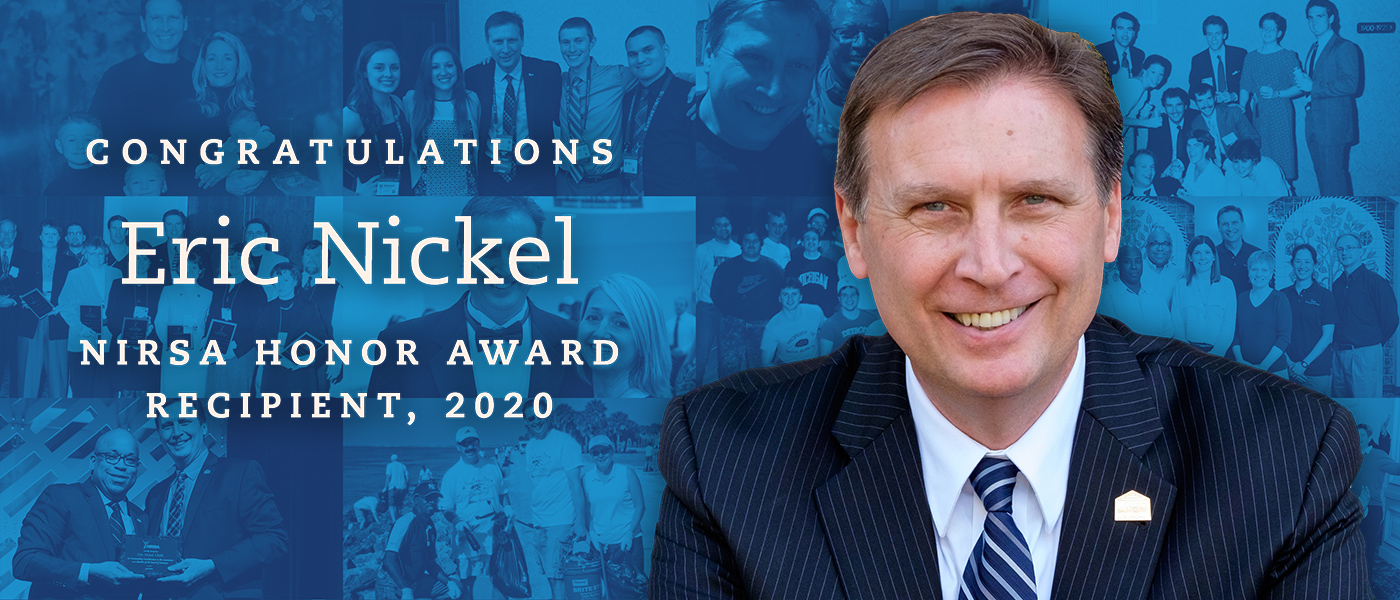 On behalf of the 2019-2020 <a href="https://nirsa.net/portfolio-items/lead-honor-award/">NIRSA Honor Award Committee</a>, I am excited to announce that <a href="https://connect.nirsa.org/network/findamember/members/profile?UserKey=9faabbda-0946-427e-92f4-0e3b7c5d3ac0">Eric Nickel</a>, Director of University Recreation at James Madison University, has been selected as the recipient of the 2020 <a href="https://nirsa.net/awards/honor-award/">NIRSA Honor Award</a>! Since 1963, when it was first conferred on <a href="https://nirsa.net/2013/07/03/130703_01-past-president-of-nirsa-george-w-haniford-passes-away/">Dr. George Haniford</a>, the NIRSA Honor Award is presented annually as our association’s most prestigious honor. Eric is the outstanding NIRSA member who has proven exemplary service to the association and has made impressive achievements in the field of collegiate recreation. Eric is the standout among an impressive field of deserving nominees for the 2020 award. <div class="img-full"><img title="At least 1200px wide" src="https://nirsa.net/wp-content/uploads/200120_03-news-b.jpg" /></div> “There are countless numbers of people who call Eric for advice both professionally and personally,” says <a href="https://connect.nirsa.org/network/findamember/members/profile?UserKey=a908b09c-cdaa-44de-bdeb-8a0e2c70d08a">Steve Bobbitt</a>, Associate Director of Programs at JMU’s University Recreation. “When it comes to influencing, motivating, and supporting the development of students, young professionals, or emerging leaders in the profession, no one in the country can match the efforts of Eric Nickel,” says <a href="https://connect.nirsa.org/network/findamember/members/profile?UserKey=5d0aab43-c099-49ac-9481-929b28bbdfdb">Julia Wallace Carr</a>, Ed.D. and Senior Associate Director and Associate Professor at James Madison University. And JMU grad <a href="https://connect.nirsa.org/network/findamember/members/profile?UserKey=d0f5a7ac-2ec2-4b26-8192-8cabfd8b330e">Rachael Finley</a>, Director of Campus Recreation at York College of Pennsylvania, adds: “We may never be able to quantify the impact of Eric's influence on our profession, but anyone who has served with him, been under his leadership, or participated in a JMU program can certainly qualify the scope of his influence.” His significant contributions to NIRSA and to the campus recreation profession will be celebrated this year on the association’s biggest stage: Join your NIRSA family in celebrating Eric during the Opening General Session of the <a href="https://nirsa.net2020/">2020 NIRSA Annual Conference & Campus Rec and Wellness Expo</a>.