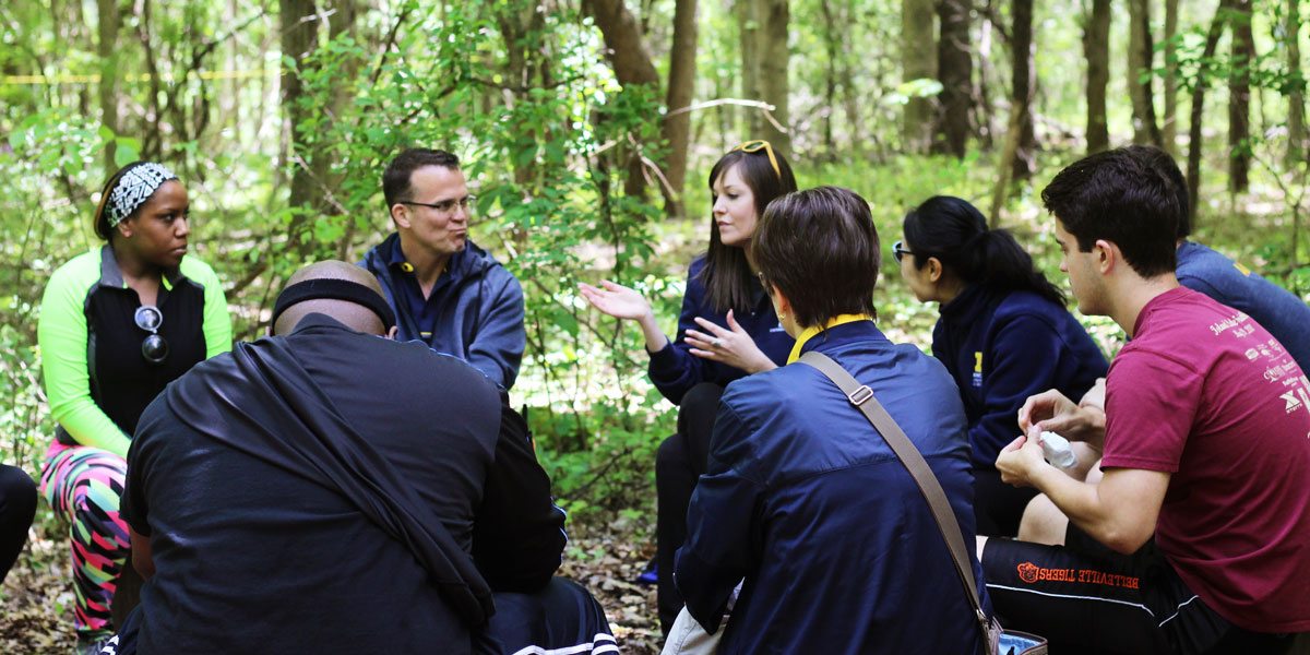 The Adventure Leadership Program offers off and onsite learning opportunities with the latter taking place at Michigan’s Adventure Education Center, a 150-acre site in northeast Ann Arbor. The facility includes a 3,000 square foot building for meetings, retreats, and conferences; a multi-element low course; a two-tiered high ropes course; a 45-foot climbing tower; and two zip lines. Programs are customized based on participating groups’ interests and skills levels. “Student and community member staff are trained in the skills of facilitation through an experiential education lens in order to provide participants opportunities to explore leadership, organizational behavior, and the environment through adventure practices and outdoor recreation,” explains Jessa Lytle, Assistant Director of Adventure Leadership. Every program is unique and activities vary widely—from dogsledding trips to wilderness first aid courses to onsite experiential learning courses.“We provide participants opportunities to explore leadership, organizational behavior, and the environment through adventure practices and outdoor recreation.”