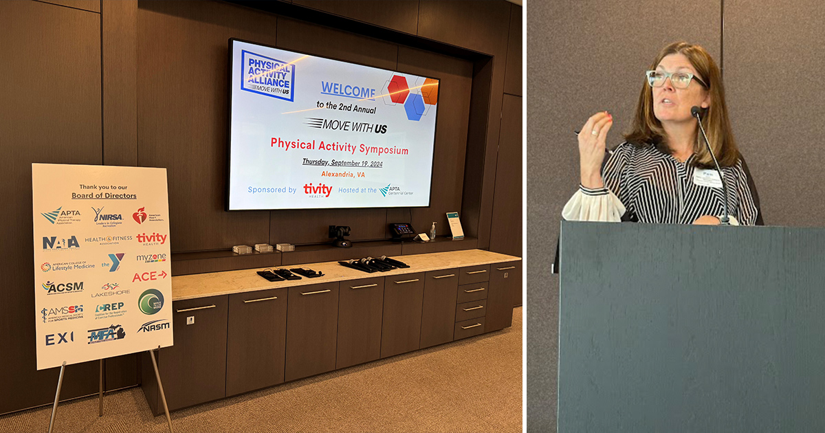 On September 19, over 100 thought leaders—representing over 75 organizations—gathered just outside Washington DC for the second annual Physical Activity Symposium, hosted by the Physical Activity Alliance (PAA). With a focus on collaboration and innovation, this year's event was all about how we as a community can drive progress towards systemic solutions. NIRSA Executive Director Pam Watts, who is currently serving as PAA President, started the event by welcoming participants from a variety of sectors, including healthcare, fitness, education, public health, military, and policymaking. In her remarks she emphasized the importance of working as a collective to address complex issues. "We are here to meet as a community to explore how we can address physical inactivity," she stated.