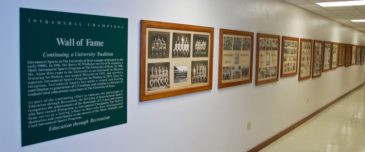 Two innovative individuals established the first men’s and women’s intramural/physical activity programs at The University of Texas at Austin. Berry M. Whitaker, an Indiana University graduate and football star, came to the Lone Star State when he was hired to start a physical education program for Austin’s public schools as well as to coach the Austin High School Maroons. Two straight state championships caught the eye of UT Athletic Director Theo Bellmont who hired Berry in 1916 to start a formal men’s intramural program. Berry’s philosophy was expressed on a sign hanging outside his office that read: “A sport for every man and every man in a sport.” Anna Hiss arrived on the UT campus in 1918 from Sargent University (later Boston College) to serve as a physical activity instructor. In 1921, Anna was named director of the Women’s Physical Activity Program. Although she had an aversion to intercollegiate competition and only tolerated intramurals, she organized her program around a point system where women could earn points for participating in one of ten clubs such as the Turtle Club (swimming), the Racquet Club (tennis), or Tee (golf). The ultimate goal was to earn a letter sweater and finally a T Blanket. Anna ultimately adopted the philosophy “Sport for the sake of sport” and abolished the point system in 1928. She retained the clubs and designed a team sport division for freshmen and an inter-group division for dorms, sororities, and independents. By 1933, a separate women’s intramural program was established for these three groups. While both Anna Hiss and Berry Whitaker experienced great success in those early years, the critical factor confronting both leaders was the lack of adequate facilities.New homes for the men and women
